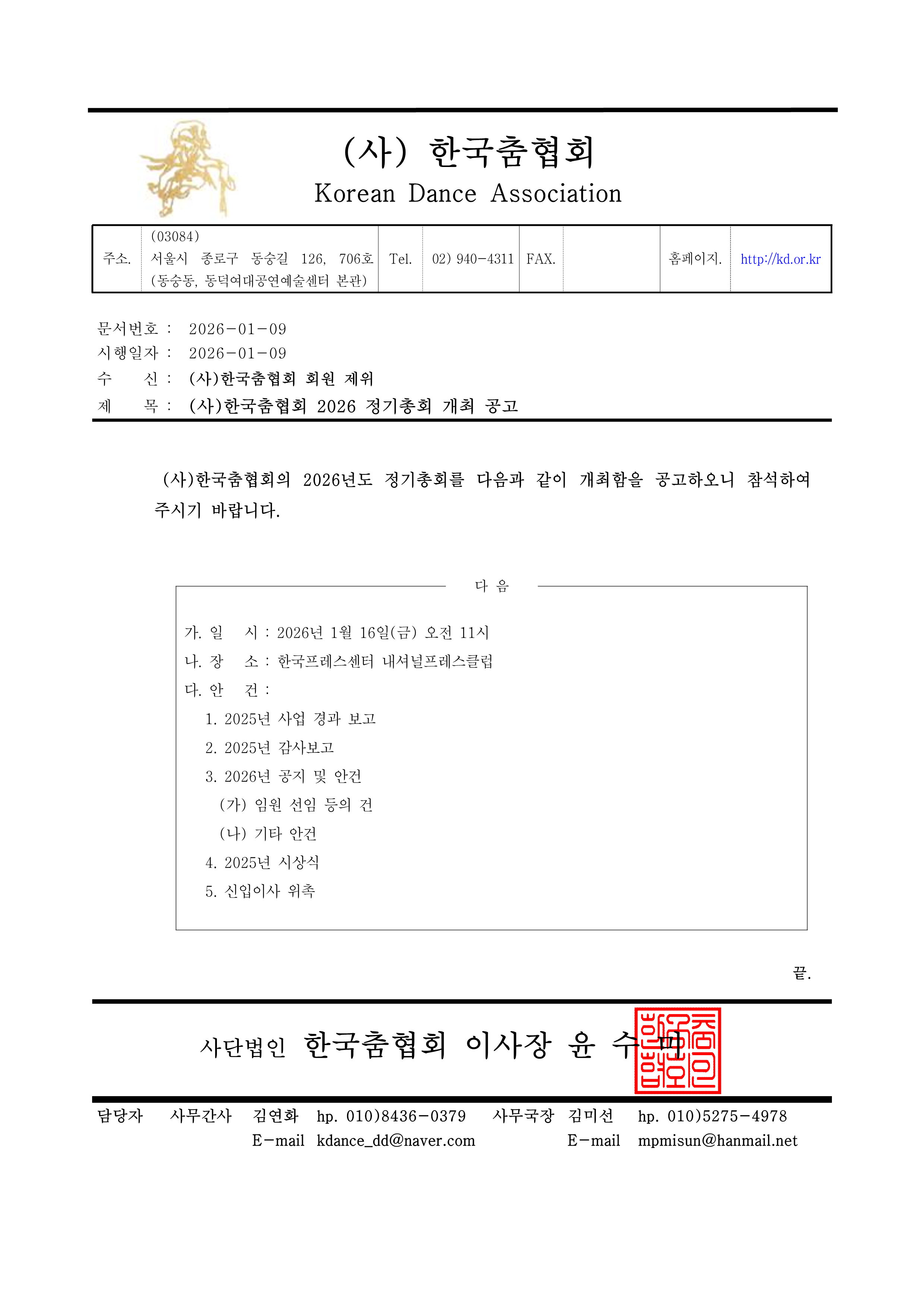 | [2026 정기총회 공고] | ||