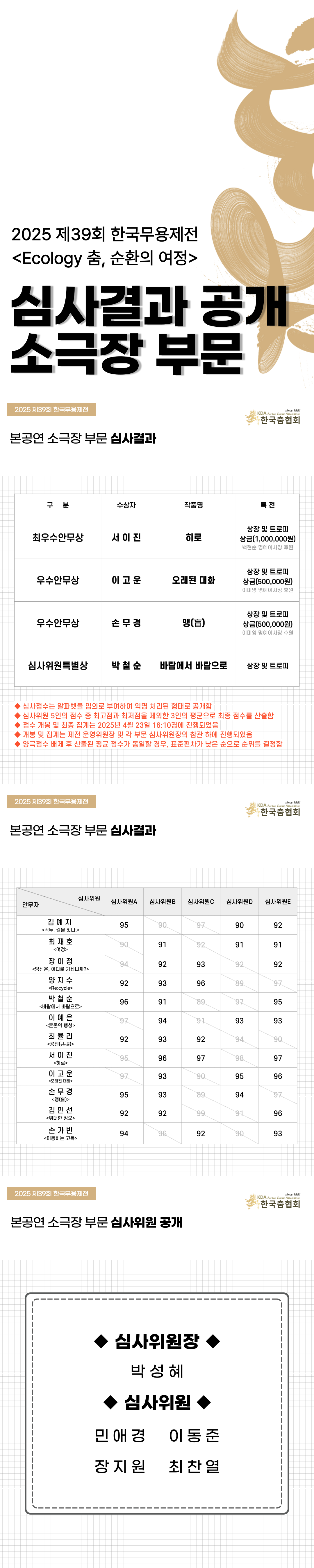 | [2025 제39회 한국무용제전] 심사결과 공개_소극장 부문 | ||